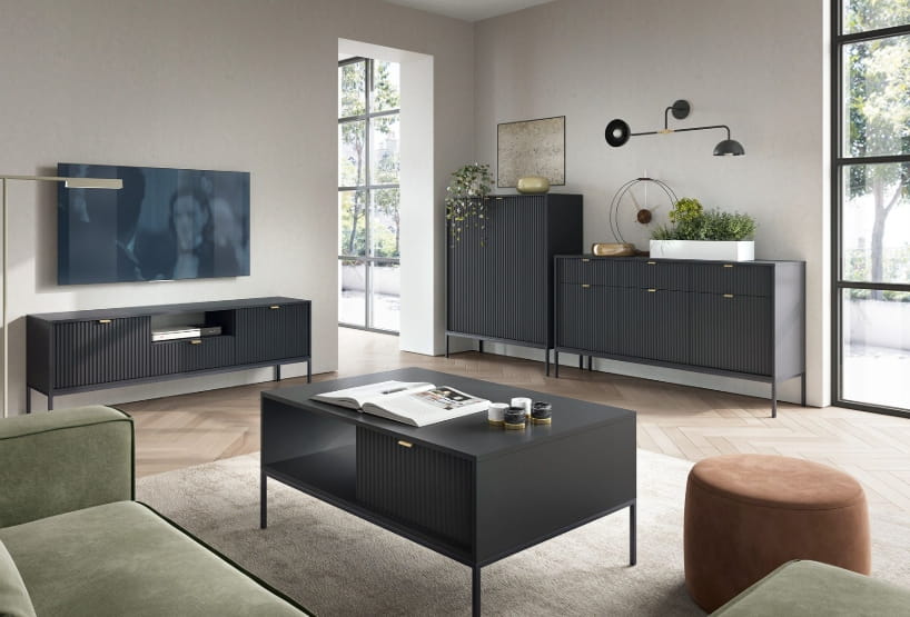 Jeśli chcesz dodać swojemu mieszkaniu nowoczesnego i eleganckiego charakteru, wybór mebli z lamelami ,,ZANZI" to strzał w dziesiątkę! Ich unikalny design sprawia, że każde wnętrze zyskuje wyjątkowy styl. ✨