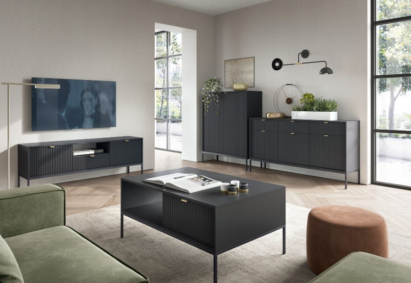 Jeśli chcesz dodać swojemu mieszkaniu nowoczesnego i eleganckiego charakteru, wybór mebli z lamelami ,,ZANZI" to strzał w dziesiątkę! Ich unikalny design sprawia, że każde wnętrze zyskuje wyjątkowy styl. ✨