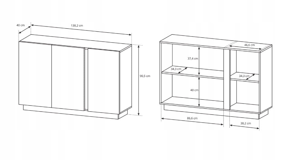 - Funkcjonalna i przestronna - komoda wyposażona jest w trzy pary drzwi co zapewnia łatwy dostęp oraz w pojemne półki do przechowywania ubrań.