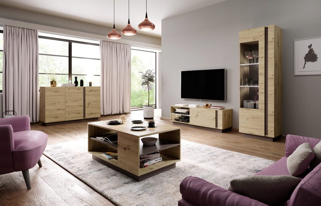 - Modny, minimalistyczny design sprawia że komoda - witryna idealnie wpasuje się w każdą aranżację i nadal wnętrzu elegancji.