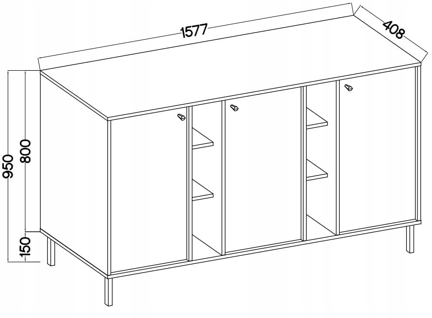 KOMODA TRZYDRZWIOWA Z PÓŁKAMI