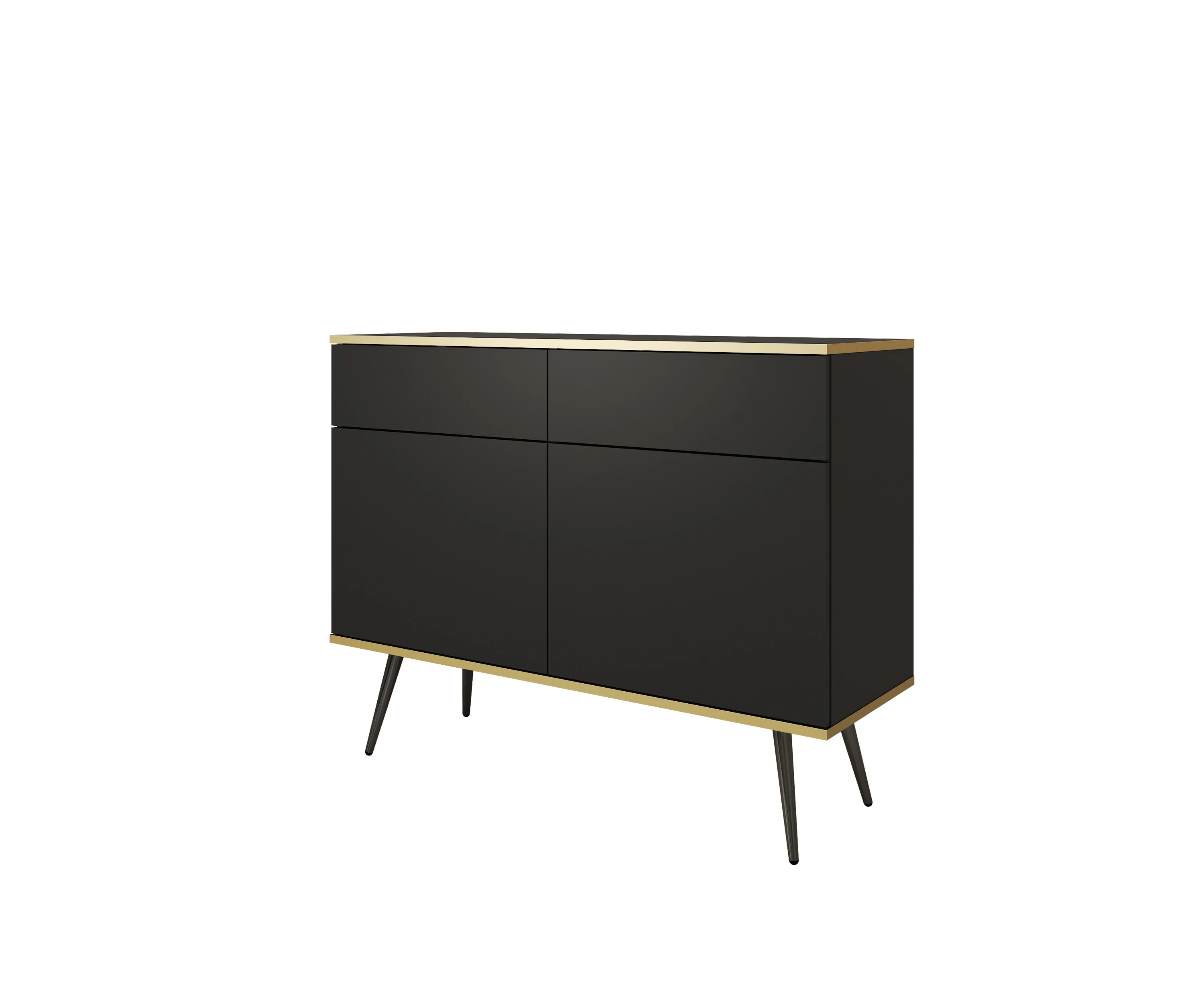Komoda 107 cm czarna ze złotymi zdobieniami i czarnymi nogami — 2 drzwi, 2 szuflady — Aurezzia
