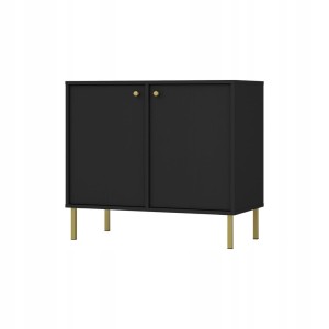 Komoda Dwudrzwiowa SYDNEY2, 84 x 74 x 41 CZARNY GRAFIT, Złoty uchwyt i noga