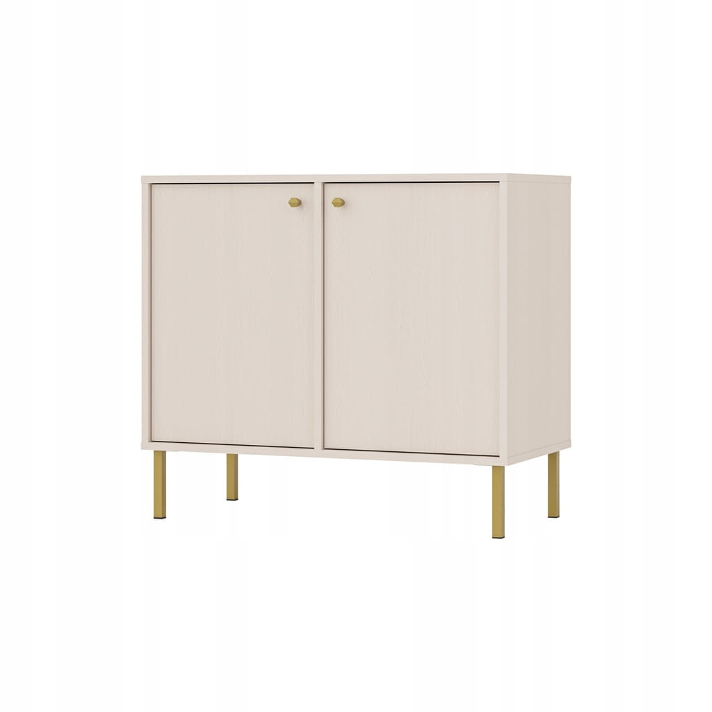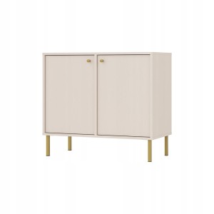 Komoda Dwudrzwiowa SYDNEY2, 84 x 74 x 41 PIASKOWY BEŻ, Złote uchwyty i nogi