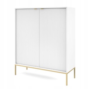 Komoda dwudrzwiowa ZANZI 104 x 125 x 39 cm, lamele BIAŁY / ZŁOTY STELAŻ