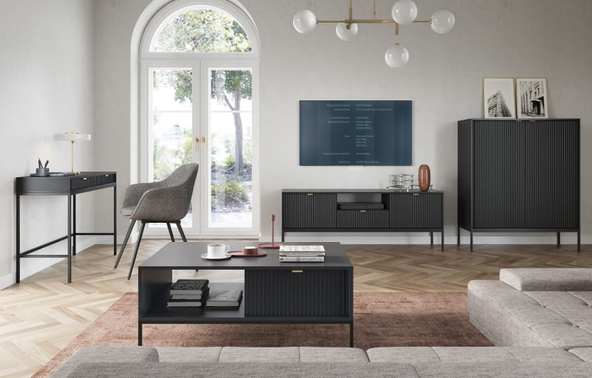 Jeśli chcesz dodać swojemu mieszkaniu nowoczesnego i eleganckiego charakteru, wybór mebli z lamelami ,,ZANZI" to strzał w dziesiątkę! Ich unikalny design sprawia, że każde wnętrze zyskuje wyjątkowy styl. ✨