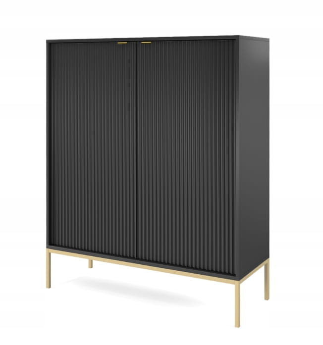 Komoda dwudrzwiowa ZANZI 104 x 125 x 39 cm, lamele CZARNY / ZŁOTY STELAŻ