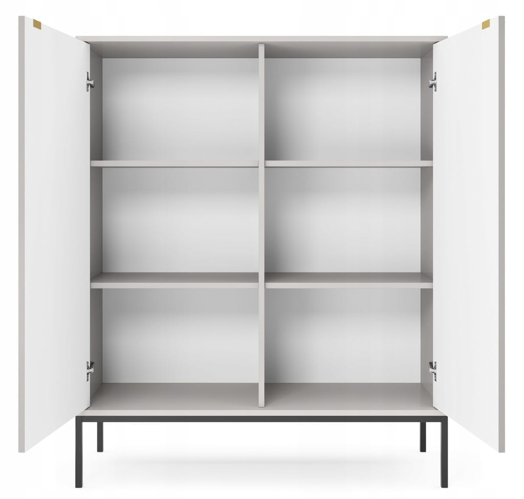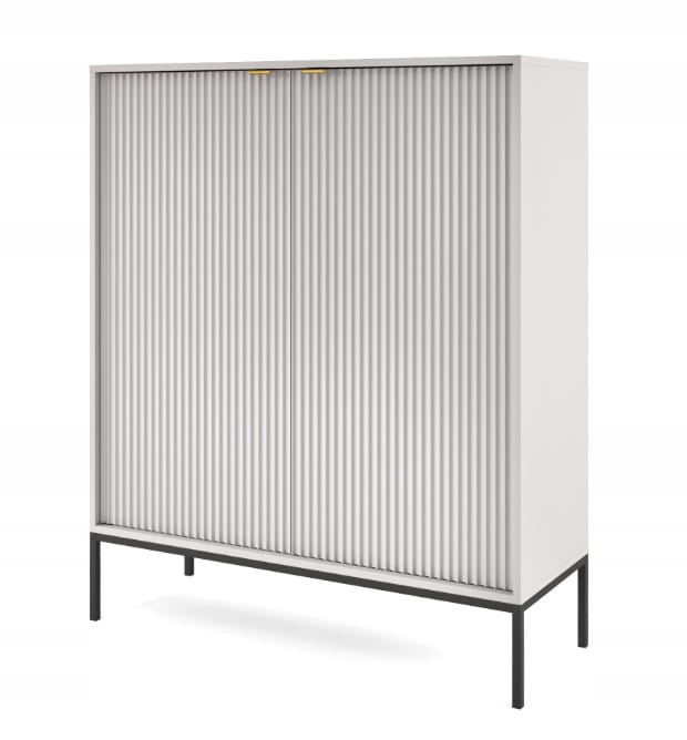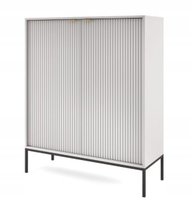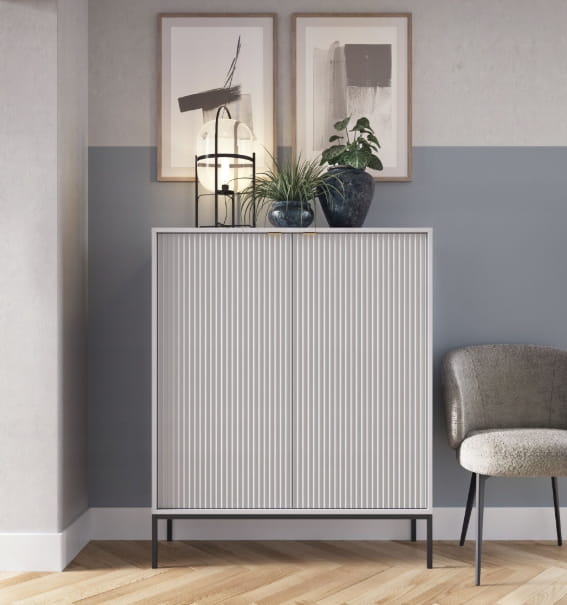 Komoda dwudrzwiowa ZANZI sprawdzi się zarówno w nowoczesnych, jak i klasycznych wnętrzach, dodając im wyrafinowanego stylu. Dzięki frezowanym frontom mebel zyskuje dynamiczną strukturę, która odświeża wygląd wnętrza, nadając mu wyjątkowy charakter. Smukłe, wysokie nogi na stelażu nadają komodzie szyku a zarazem ułatwiają utrzymanie porządku.