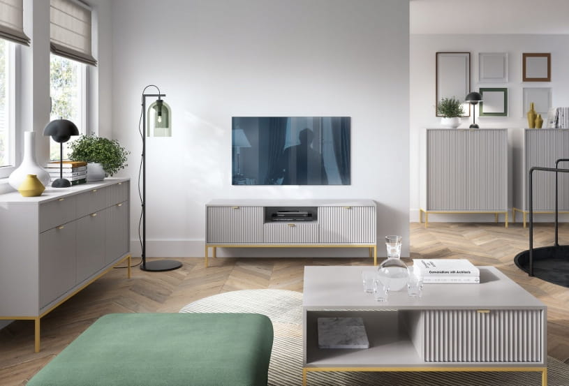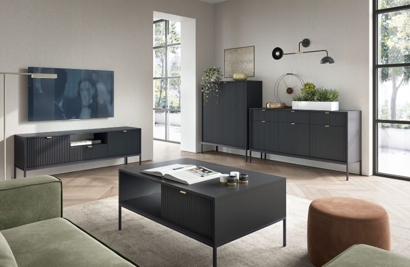 Jeśli chcesz dodać swojemu mieszkaniu nowoczesnego i eleganckiego charakteru, wybór mebli z lamelami ,,ZANZI" to strzał w dziesiątkę! Ich unikalny design sprawia, że każde wnętrze zyskuje wyjątkowy styl. ✨