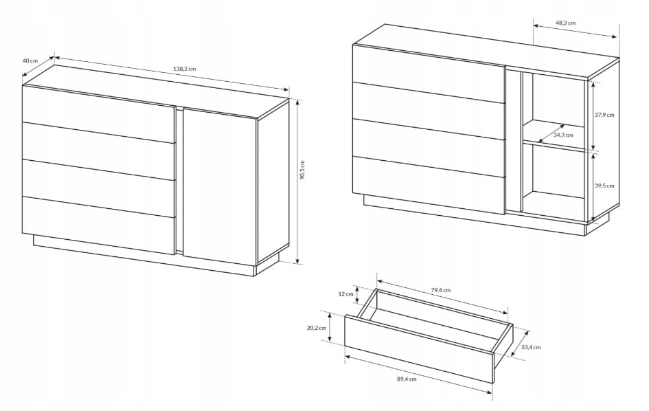 - Modny, minimalistyczny design sprawia że komoda idealnie wpasuje się w każdą aranżację i nadal wnętrzu elegancji.