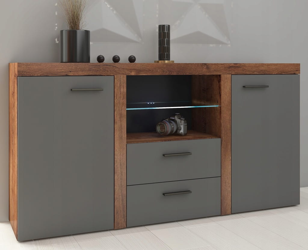 KOMODA 2D 2S SELENA - 156 x 82 x 40 cm GRAFIT / DĄB LEFKAS