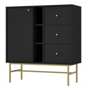 Komoda z półkami i 3 szufladami - SYDNEY 3, czarny grafit - złoty