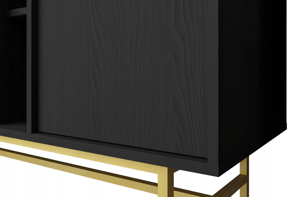 Komoda SYDNEY3, szuflady + półki, czarny grafit / złoty stelaż
