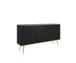 Komoda trzydrzwiowa 160 cm Aurezzia, kolor Czarny ze złotymi zdobieniami i nogami