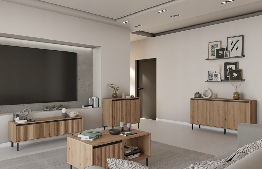 Kolekcja ANKARA łączy naturalne wybarwienia z minimalistyczną formą, tworząc meble, które wprowadzają do wnętrza spokój i subtelną elegancję. Pionowe lamele dodają głębi i struktury, dzięki czemu komoda staje się dekoracyjnym elementem aranżacji.
