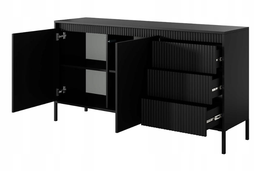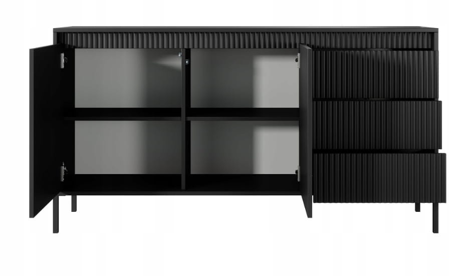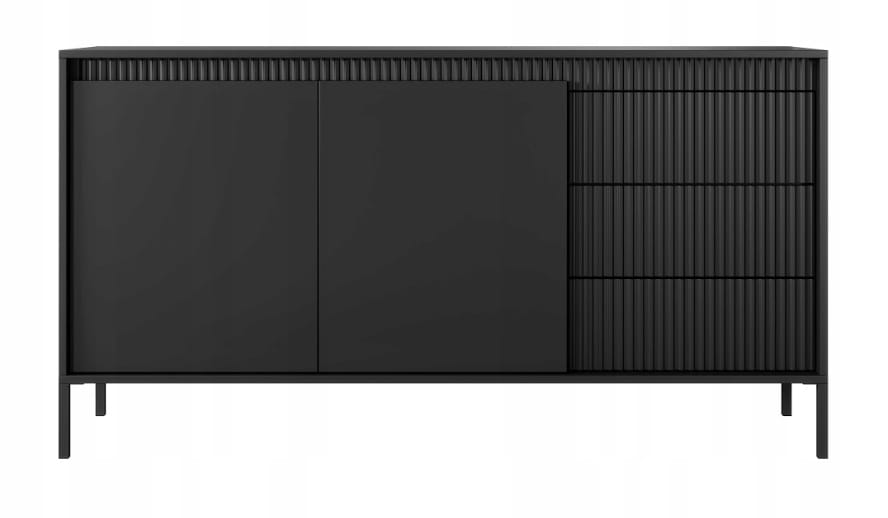 Komoda z szufladami SESSY 150 x 80 cm meble do salonu ryflowany front czerń