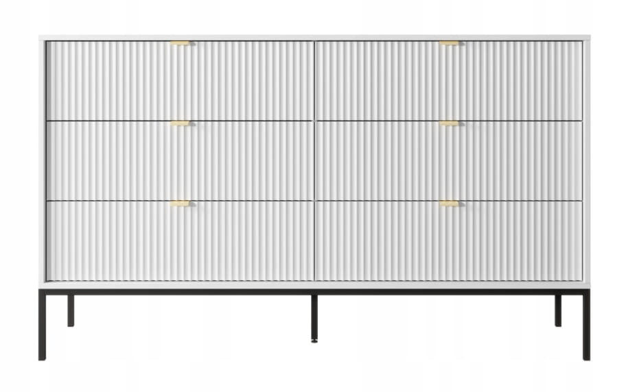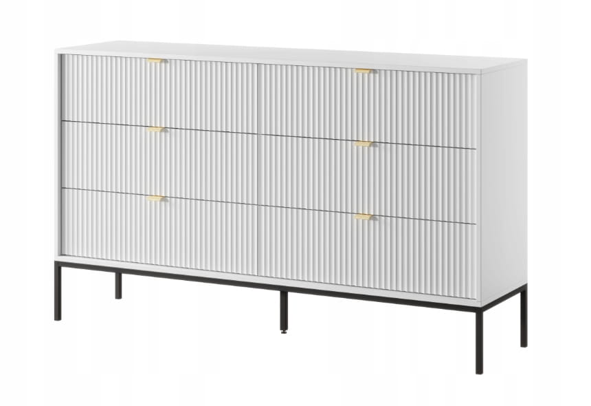 KOMODA 6 SZUFLAD - BIAŁA / CZARNY STELAŻ