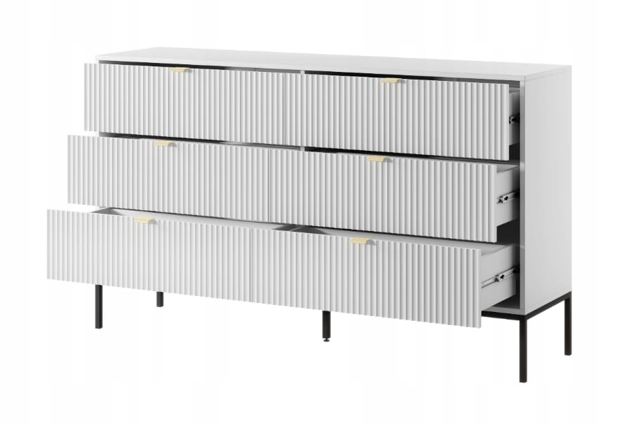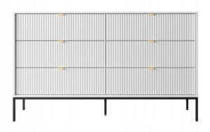 Komoda ZANZI 154 x 91 x 39 cm sześć szuflad, lamele BIAŁY/ CZARNY STELAŻ