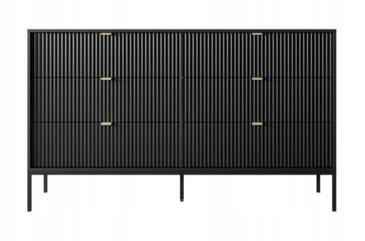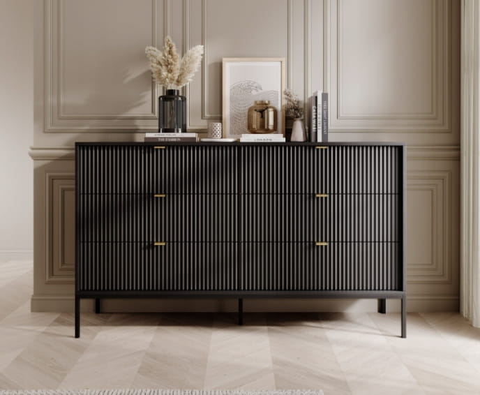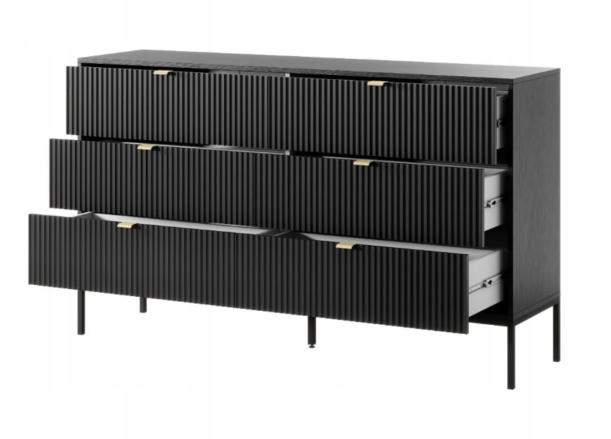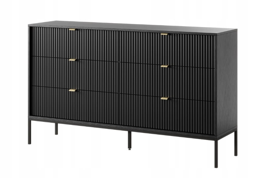Komoda ZANZI 154 x 91 x 39 cm sześć szuflad, lamele CZARNY / CZARNY STELAŻ