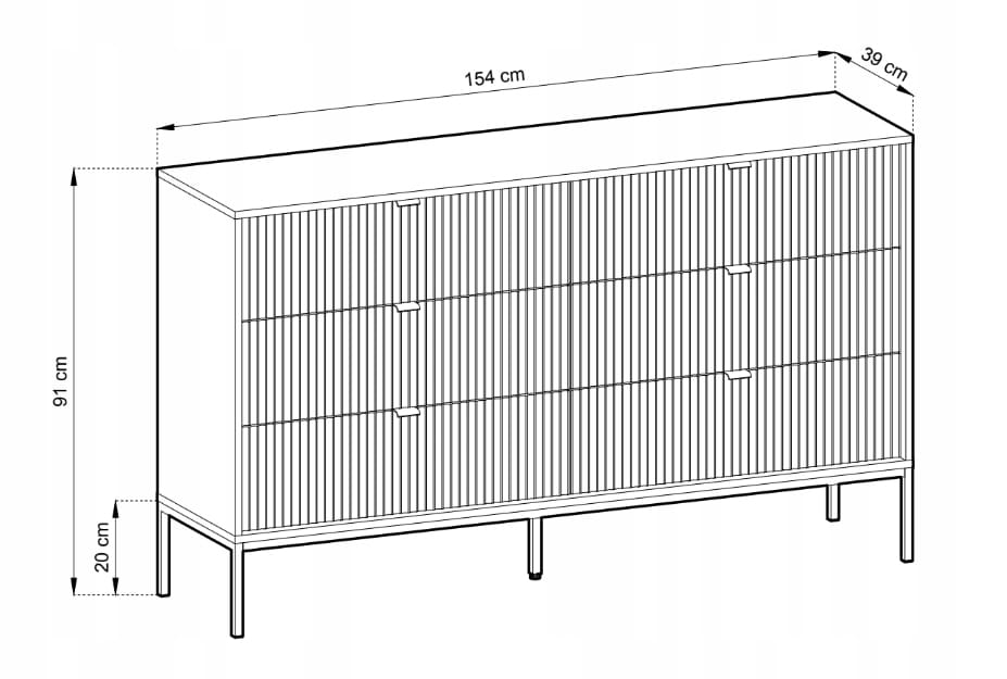 Komoda z szufladami ZANZI sprawdzi się zarówno w nowoczesnych, jak i klasycznych wnętrzach, dodając im wyrafinowanego stylu. Dzięki frezowanym frontom mebel zyskuje dynamiczną strukturę, która odświeża wygląd wnętrza, nadając mu wyjątkowy charakter. Smukłe, wysokie nogi na stelażu nadają komodzie szyku a zarazem ułatwiają utrzymanie porządku.