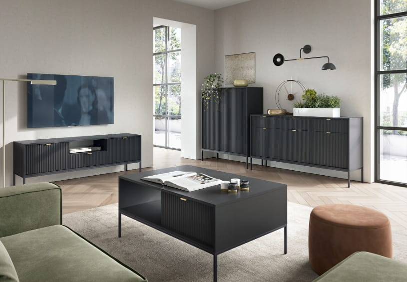Jeśli chcesz dodać swojemu mieszkaniu nowoczesnego i eleganckiego charakteru, wybór mebli z lamelami ,,ZANZI" to strzał w dziesiątkę! Ich unikalny design sprawia, że każde wnętrze zyskuje wyjątkowy styl. ✨