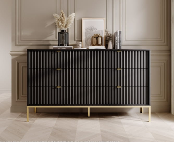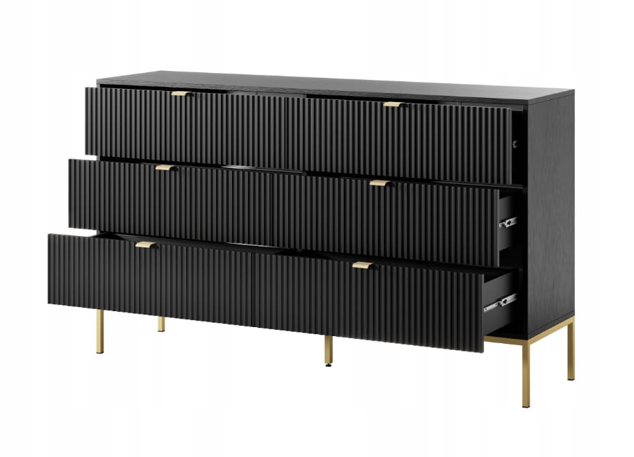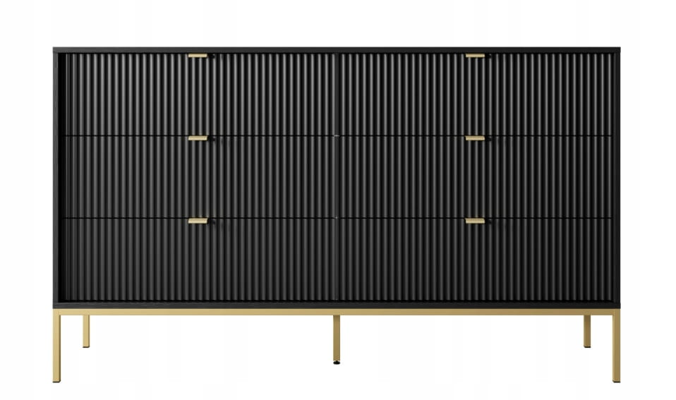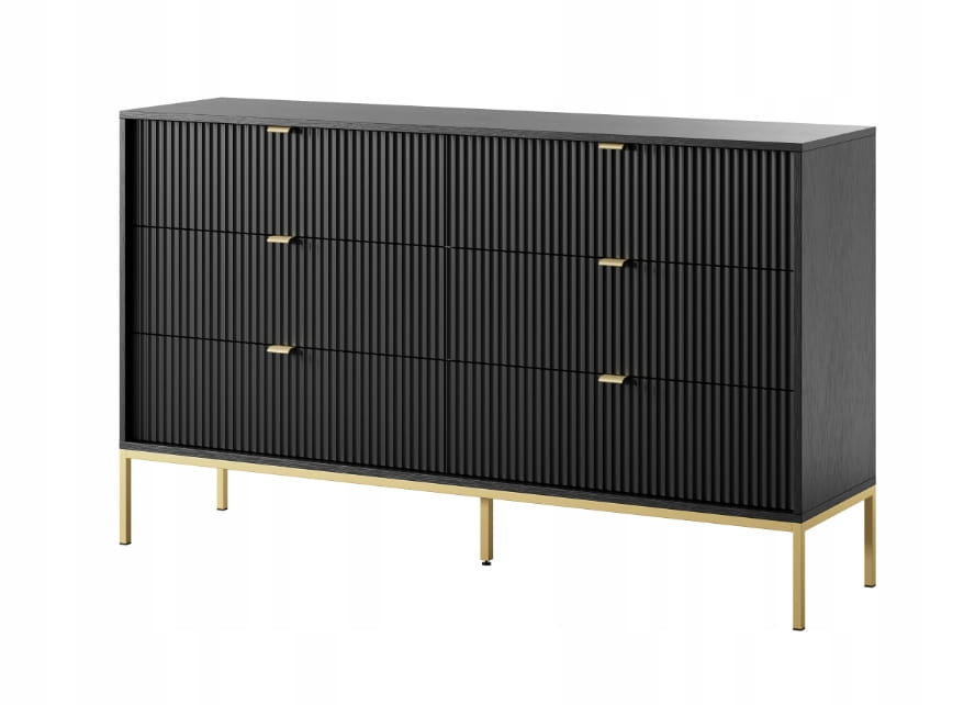 KOMODA 6 SZUFLAD - CZARNY / ZŁOTY STELAŻ