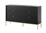 Komoda ZANZI 154 x 91 x 39 cm sześć szuflad, lamele CZARNY / ZŁOTY STELAŻ