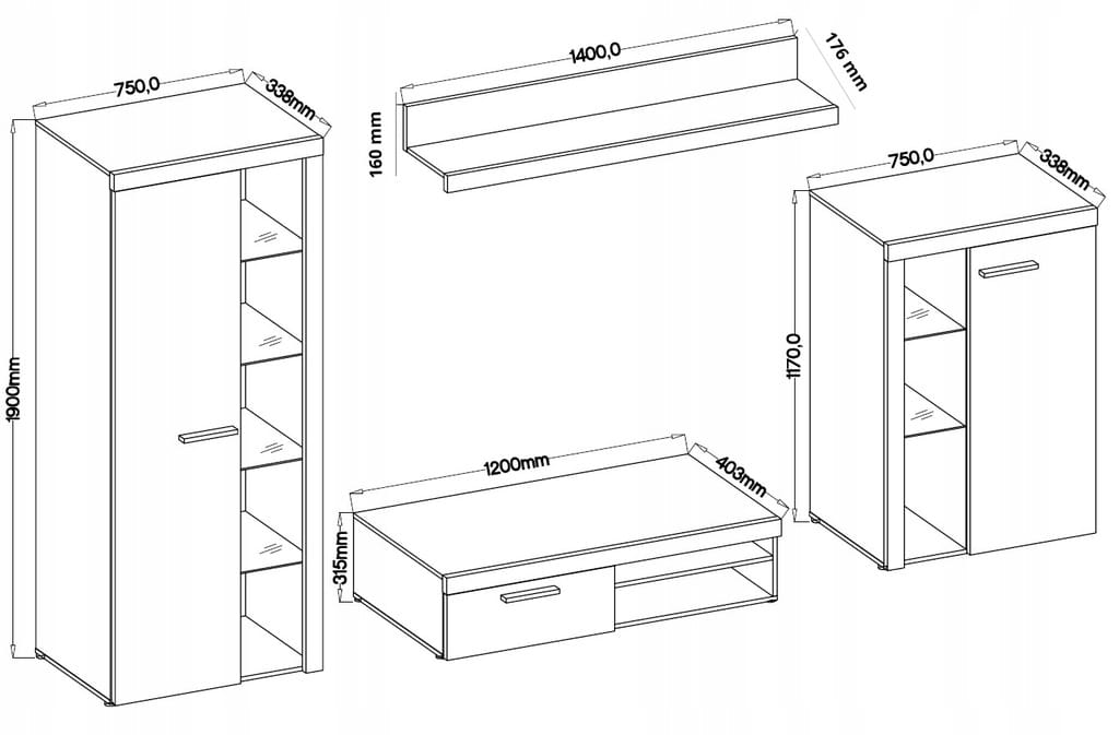 Meblościanka ,,SELENA" składa się z 4 elementów: