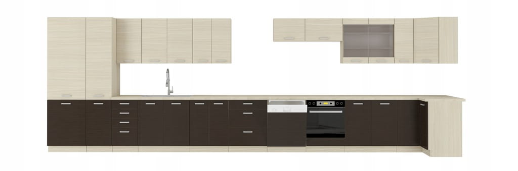 - Możliwość dowolnej konfiguracji szafek górnych i dolnych dzięki której dopasujesz kuchnie pod swoje potrzeby !!