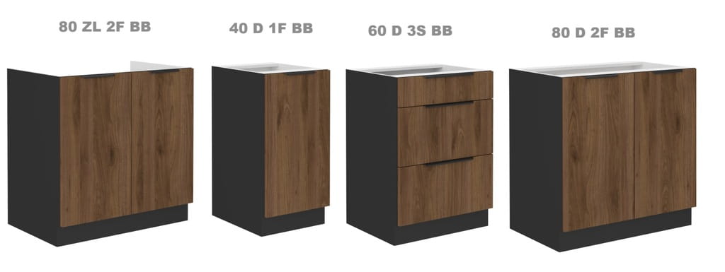 Kolekcja denver / deco to wizualnie imponująca kuchnia która emanuje nowoczesnym stylem, przy jednoczesnym zachowaniu subtelnego, tradycyjnego uroku. Ciepłe odcienie orzechu łączą się z klasyczną czernią, tworząc piękną, dwukolorową paletę. To połączenie zdecydowanie dodaje charakteru całej przestrzeni kuchennej. Czarny korpus w matowej fakturze stanowi eleganckie tło dla kontrastujących kolorów, dodając jednocześnie wyjątkowej głębi. Deco / denver są to kuchnie modułowe co daje nam możliwość dowolnej konfiguracji i stworzenia zestawu typowo pod swoje potrzeby spośród 60 szafek!