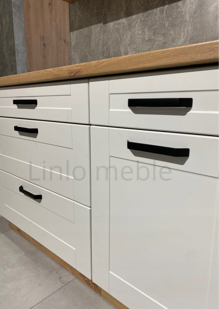 - Fronty: wysokiej jakości płyta MDF o grubości 19 mm w kolorze biały mat z frezami