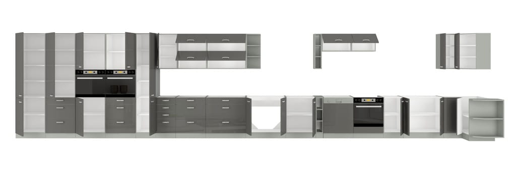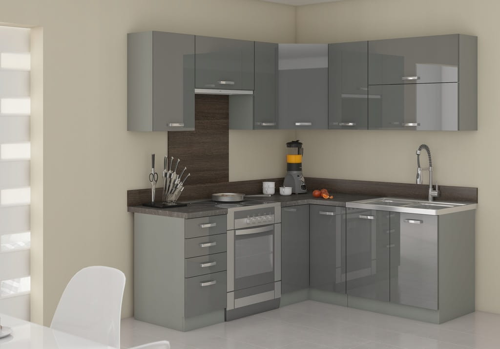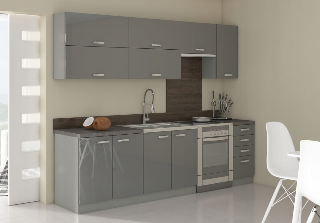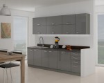 Meble kuchenne LENA, zestaw 260 cm + szary połysk