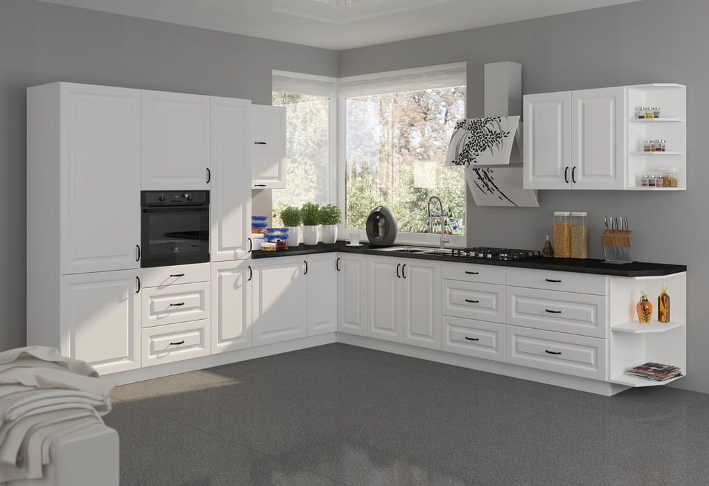 Meble kuchenne modułowe, kuchnia narożna ATENA 285 / 170 cm, z blatem