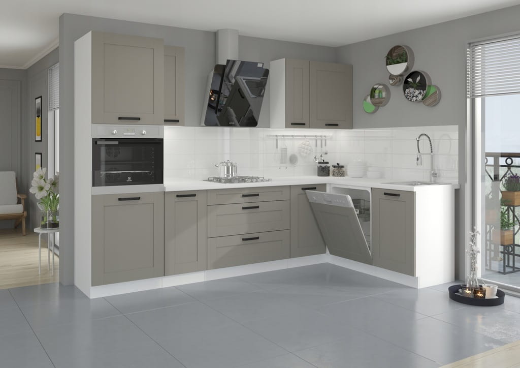 Meble kuchenne modułowe, kuchnia narożna Lila 285 / 170 cm, z blatem