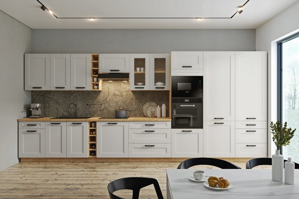 - możliwość dokupienia takich elementów jak (listwy montażowe, uszczelki pod cokół, wkłady do szuflad, suszarki kuchenne, fronty do zabudowy zmywarki)