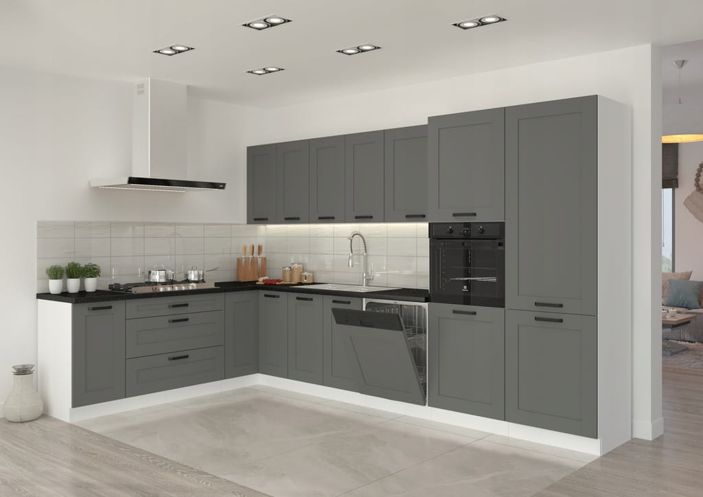 Meble kuchenne modułowe, kuchnia narożna LILA z blatem, dust grey