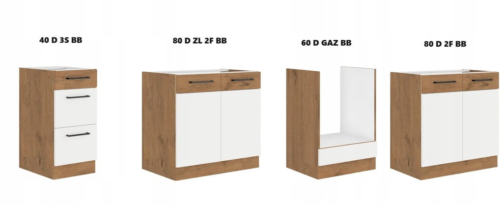 - Fronty szafek stojących : BIAŁY / DĄB LANCELOT