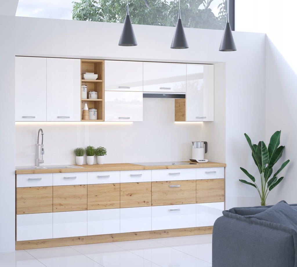 Meble kuchenne Victoria 260 cm, zestaw z blatem