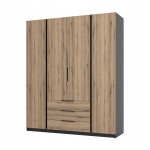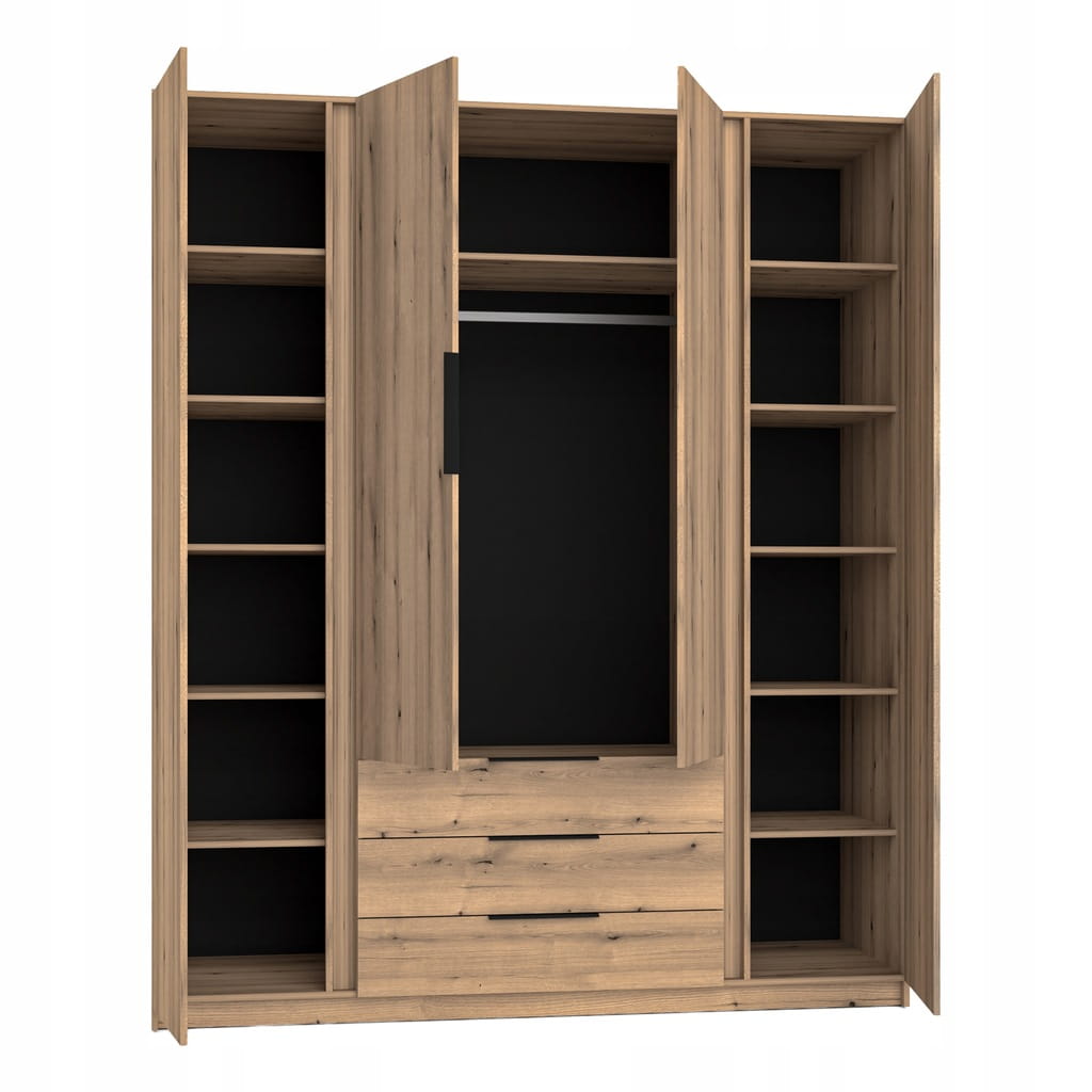 Pojemna Szafa Czterodrzwiowa IGA 200 cm dąb evoke + czarny, trzy szuflady