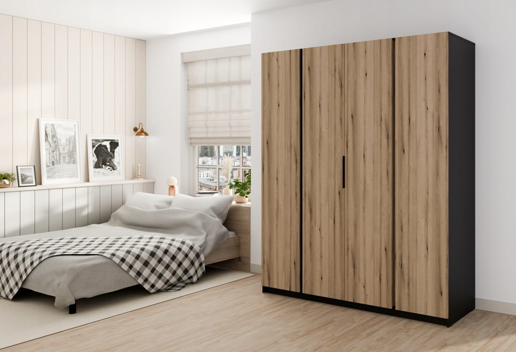 Pojemna Szafa Czterodrzwiowa IGA 200 cm fronty w kolorze dąb evoke / czarny