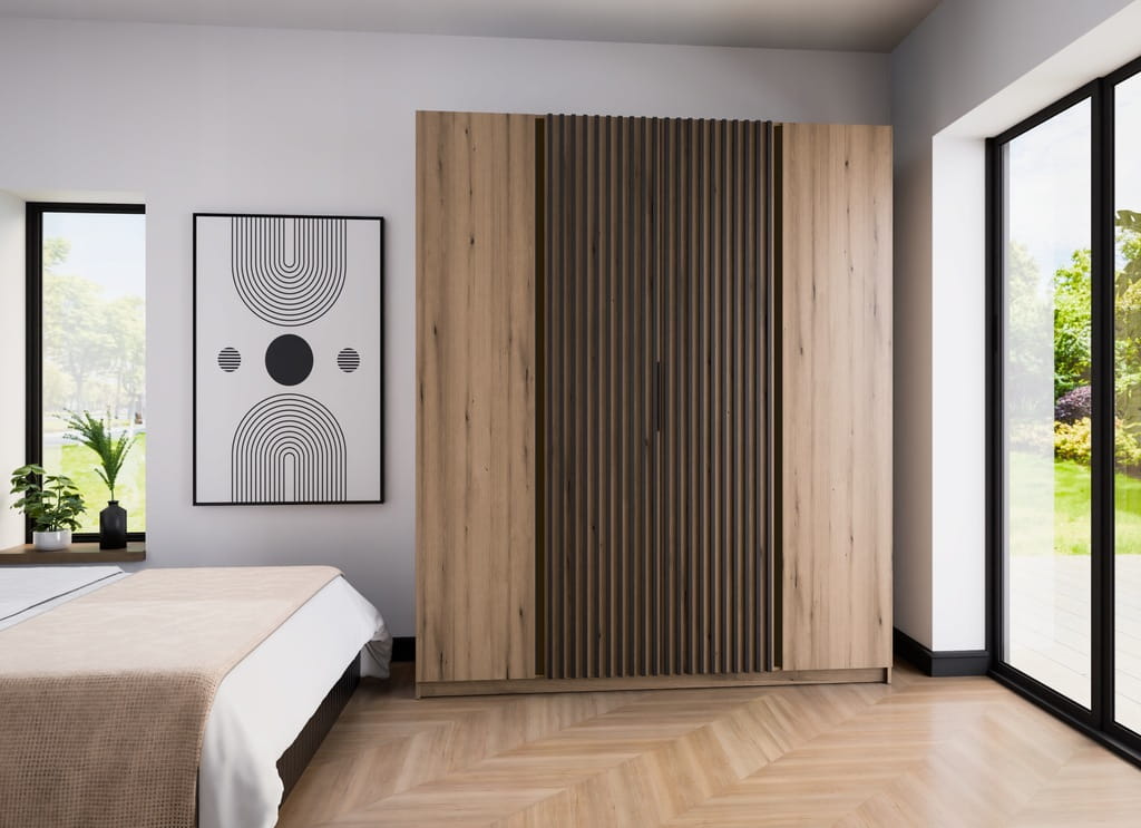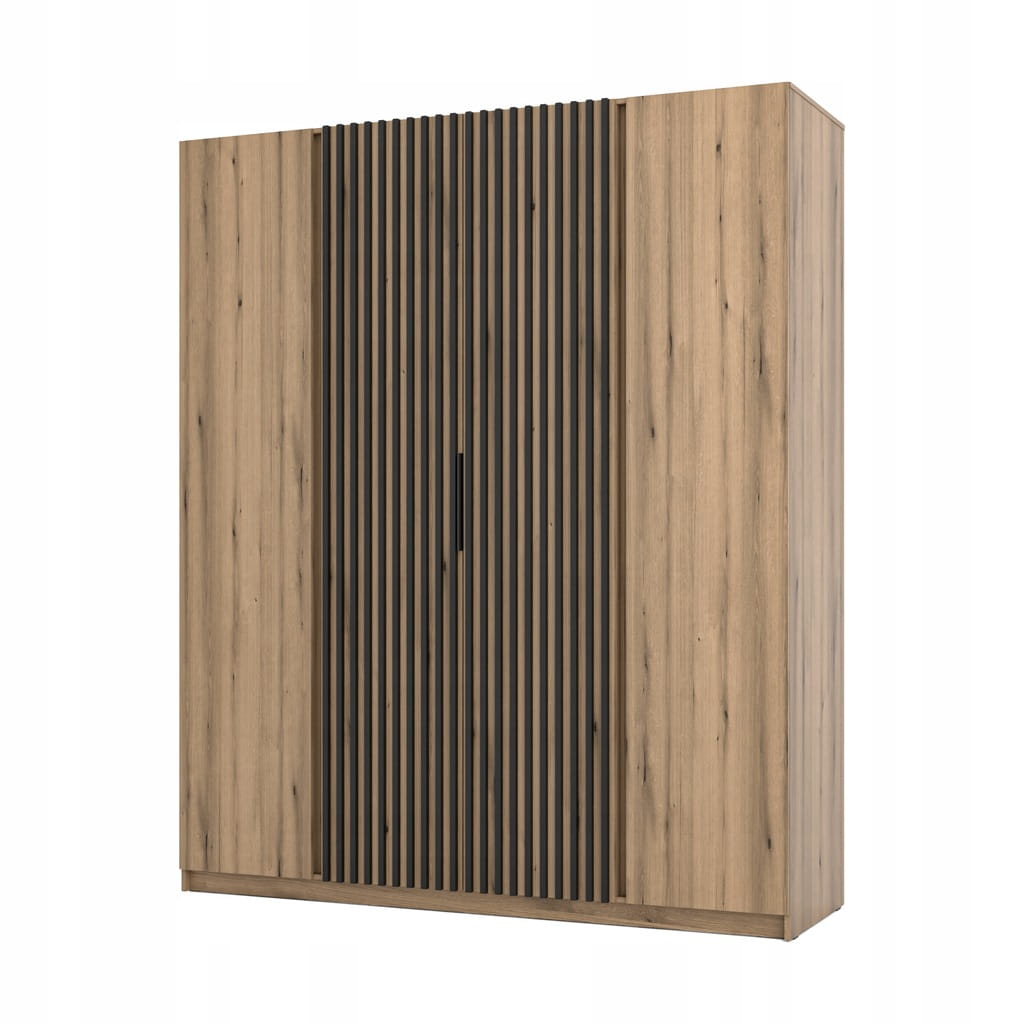 Pojemna Szafa Czterodrzwiowa IGA 200 cm kolor dąb evoke / lamele czarny