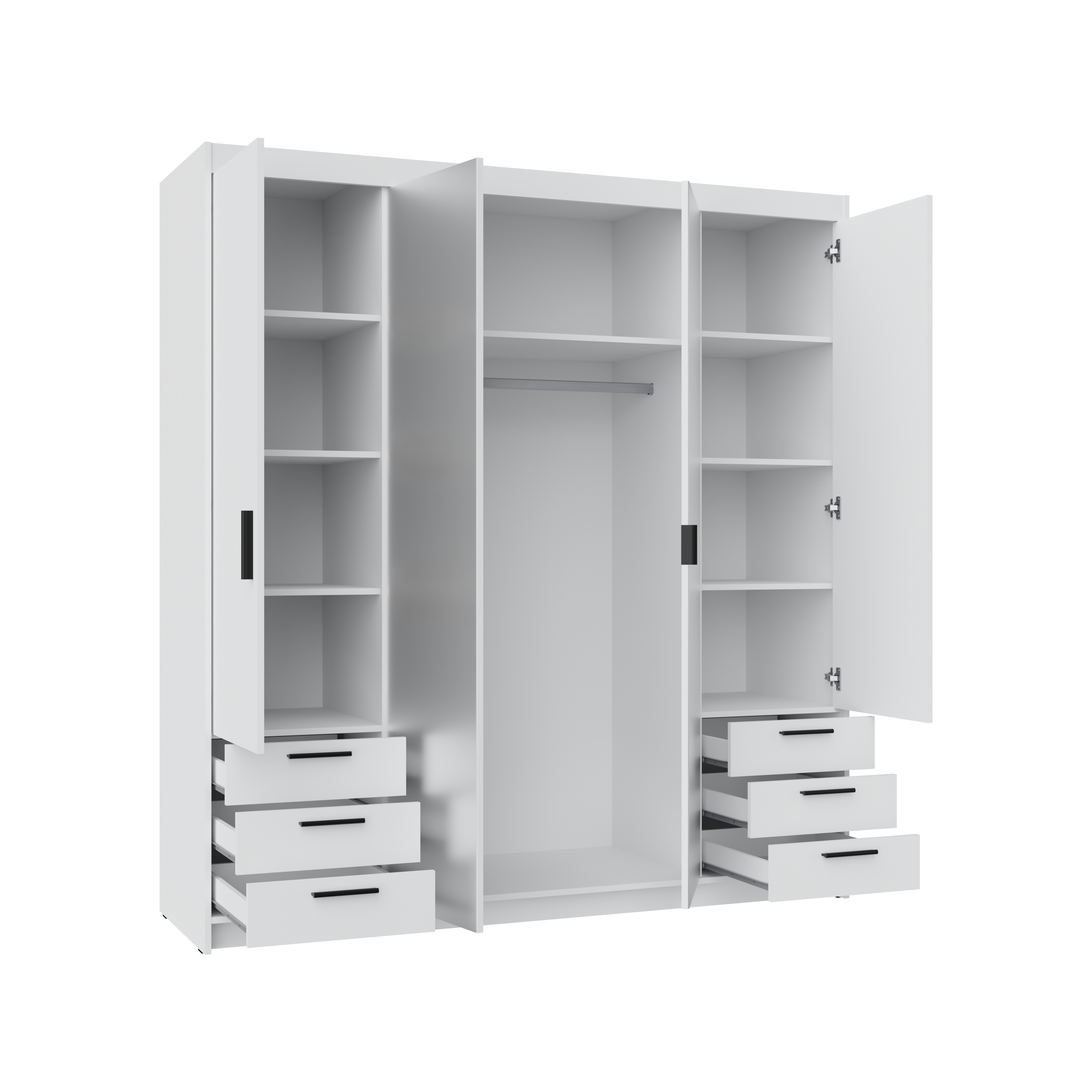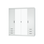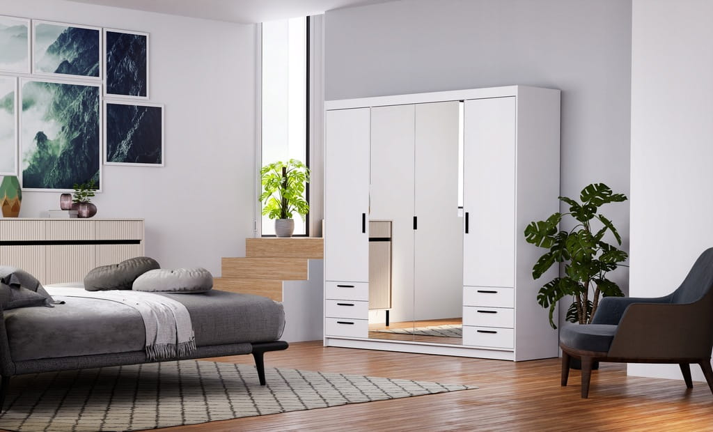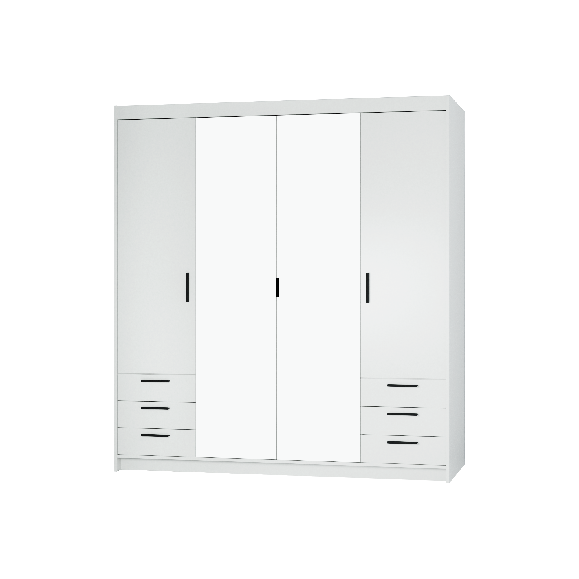 Pojemna Szafa Czterodrzwiowa KLEO lustro + 6 szuflad Garderoba KOLOR BIAŁY