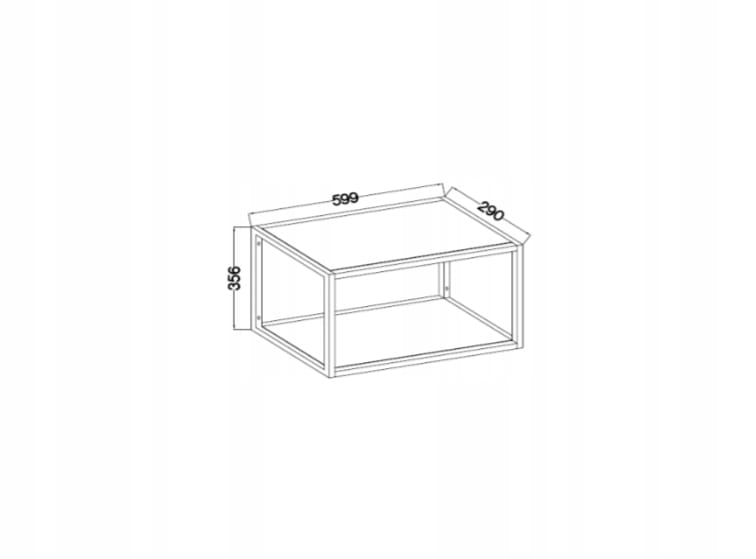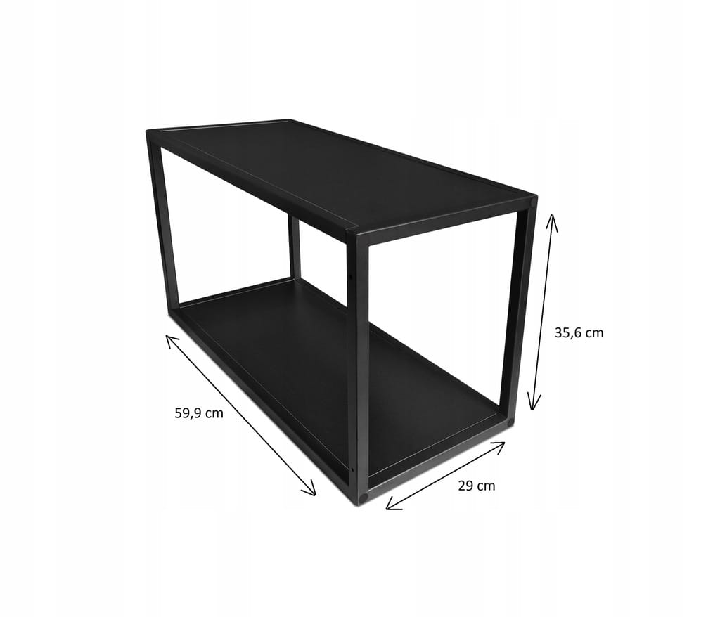 Konstrukcja wykonana została z solidnego metalowego profilu 20x20 malowanego proszkowo na czarną matową strukturę. Półka górna i dolna wykonane zostały z płyty laminowanej o grubości 16 mm w kolorze czarnym.
