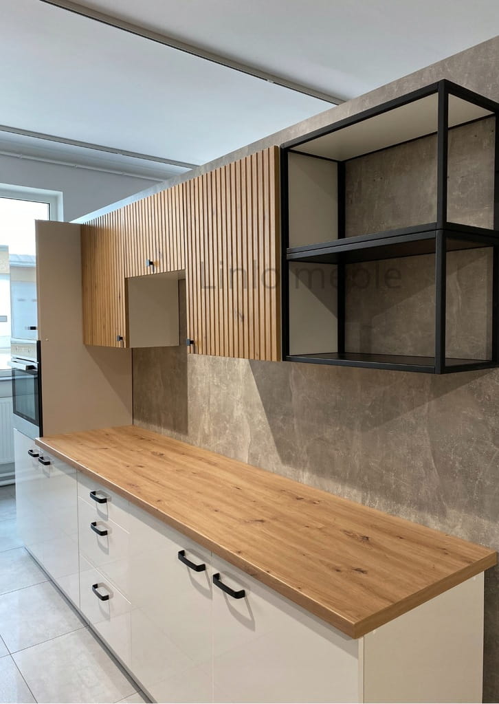 Półka One loft idealnie sprawdzi się jako dopełnienie naszych kuchni ale i nie tylko! Na przykładzie macie propozycję rozmieszczenia szafek one loft w naszej bestsellerowej kuchni LILA, którą także znajdziecie na naszych aukcjach.