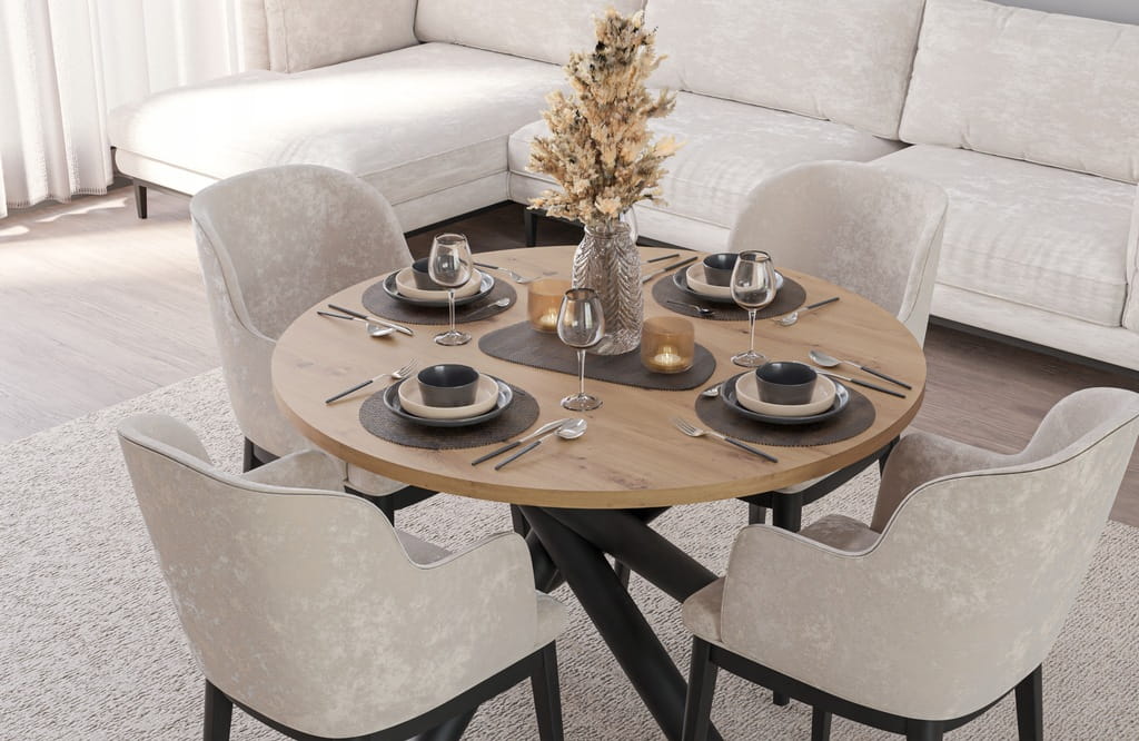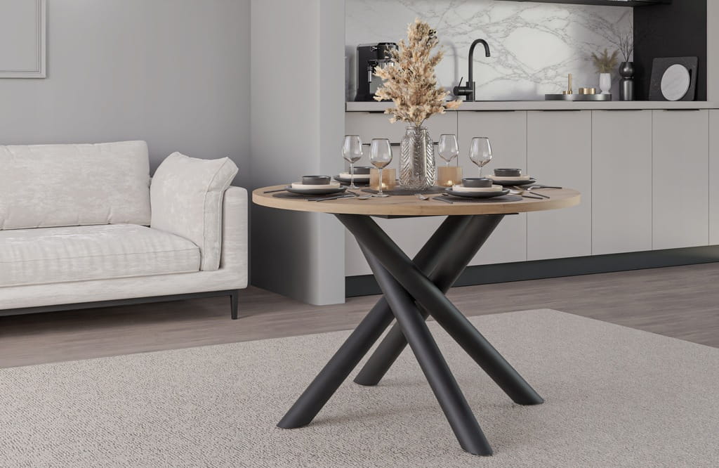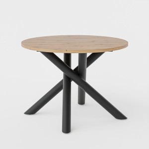 Stół loftowy do jadalni WOOD 110 cm, okrągły blat DĄB ARTISAN
