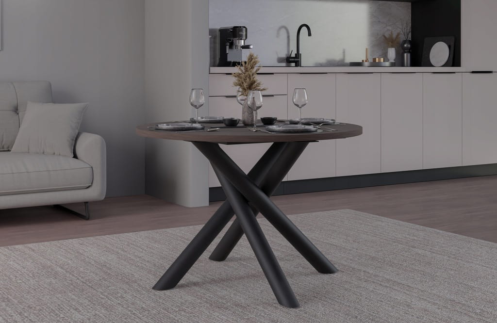 Stół loftowy do jadalni WOOD 110 cm, okrągły blat ORZECH WISCONSIN