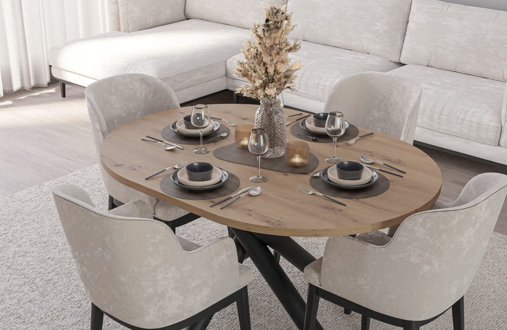 Stół loftowy do jadalni WOOD 138 x 110 cm, owalny blat DĄB ARTISAN