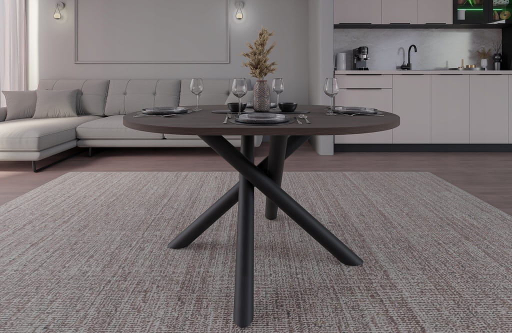 Blaty zostały osadzone na metalowych, dekoracyjnych nogach typu pająk, charakteryzujących się geometrycznym, rozgałęzionym kształtem. Poza walorami estetycznymi, taki kształt nóg gwarantuje solidne wsparcie blatu.