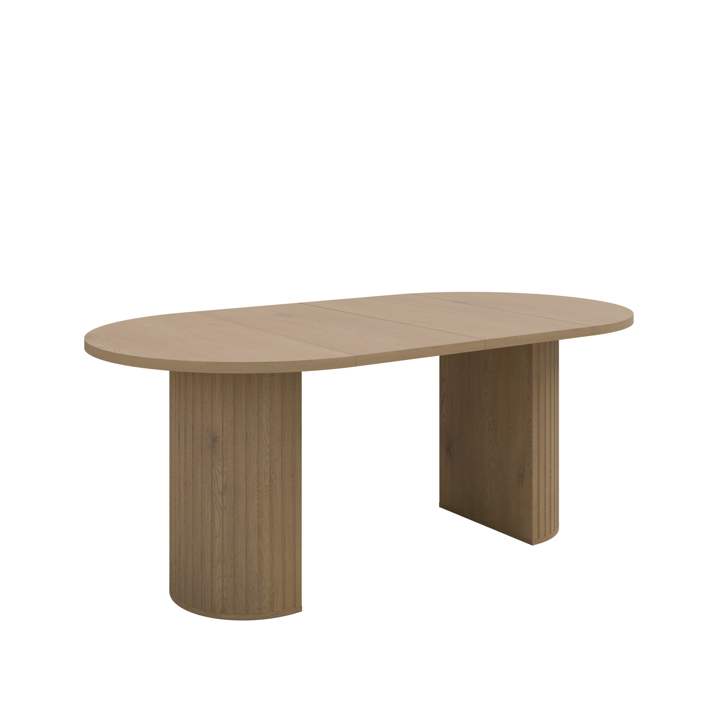 Stół rozkładany OVELLA to propozycja dla osób, które poszukują funkcjonalnego i estetycznego mebla do jadalni lub salonu. Jego okrągła forma oraz naturalne wybarwienie dąb cremona sprawiają, że model doskonale wpisuje się w nowoczesne aranżacje wnętrz, a jednocześnie pozostaje ponadczasowy i uniwersalny. Charakterystyczna ryflowana podstawa nadaje stołowi dekoracyjny wygląd, podkreślając jego elegancki charakter.
