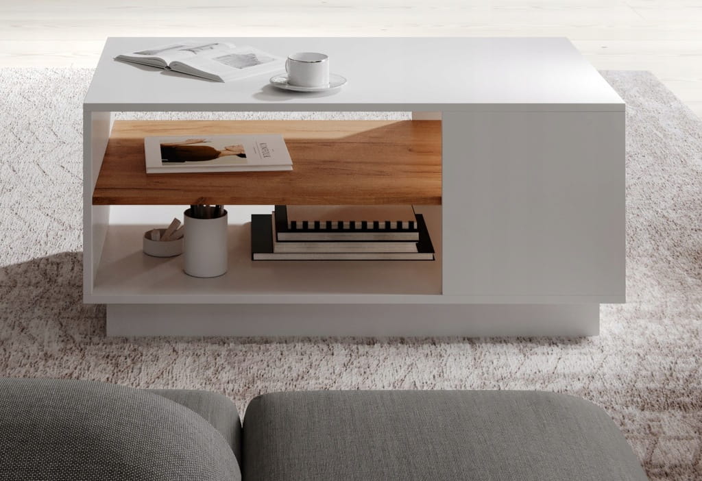 STOLIK KAWOWY ARIA 3D ŁAWA DO POKOJU, SALONU - BIAŁY / DĄB CRAFT ZŁOTY